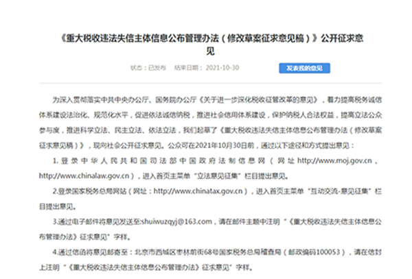 9月30日,國(guó)家稅務(wù)總局發(fā)布《重大稅收違法失信主體信息公布管理辦法》(修改草案征求意見(jiàn)稿):